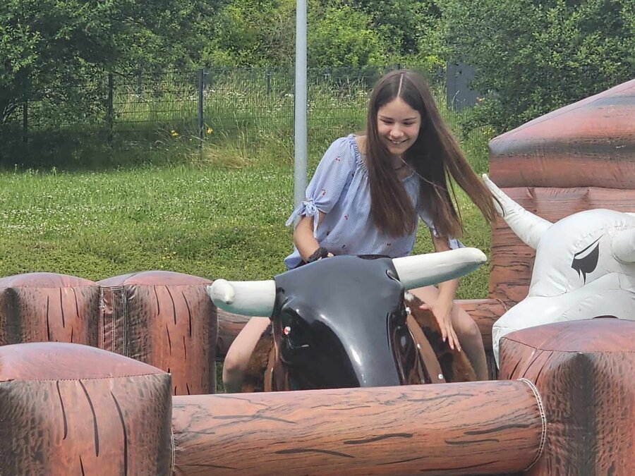 Ein Highlight des Tages war das Bullenreiten, das sowohl bei den Kindern als auch bei den Erwachsenen für großen Spaß sorgte.