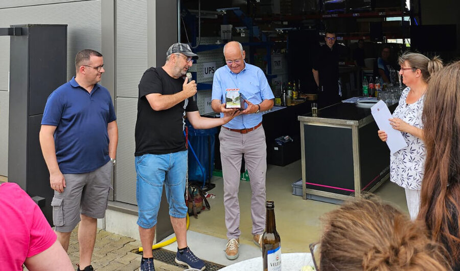 Mit einem Hauch von Wehmut verabschiedeten wir an diesem Tag unseren Gründungsgeschäftsführer Axel Loehr in den wohlverdienten Ruhestand. Herr Loehr, der 2014 als Mitunterzeichner der Gründungsurkunde von DVS Tooling einen wesentlichen Beitrag zum Erfolg des Unternehmens geleistet hat, wurde feierlich verabschiedet. Geschäftsführer Sandro Schäfer überreichte ihm als kelines Dankschön einen Gutschein für ein Wochenende auf Burg Schellenberg in Attendorn. "Es ist immer etwas Besonderes, nach Hemer zu kommen und mit der Tooling zu arbeiten," sagte der gut gelaunte Herr Loehr.